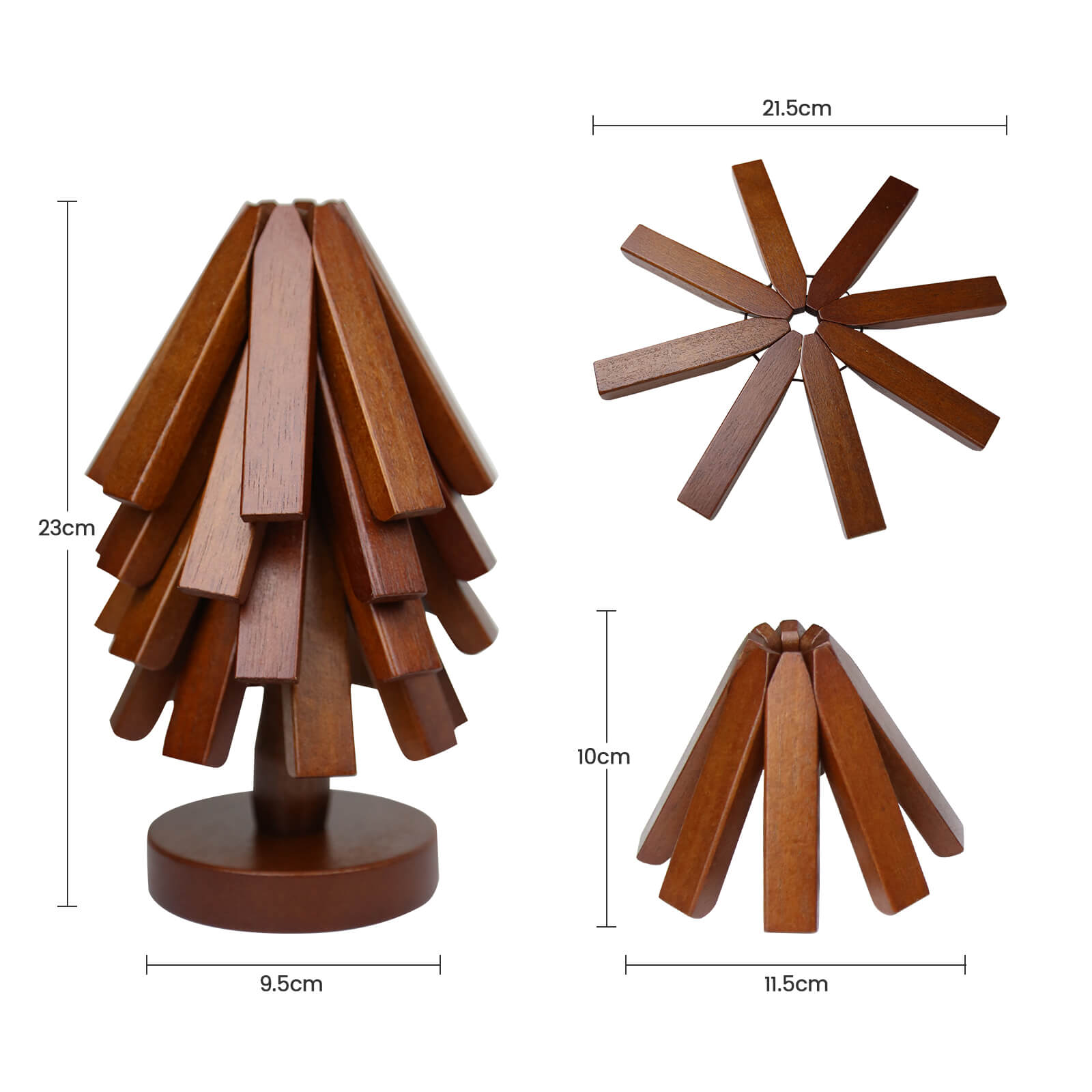 With a diameter of 21.5 cm when unfolded, these coasters are perfect for cups, bowls, plates, teapots, frying pans, and pots. They work great on various surfaces such as glass, marble, and wood.